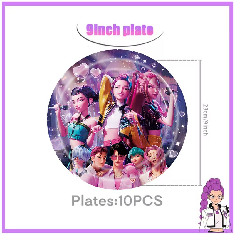 Kpop Demon Hunter Birthday Decoration Tableware Foil Balloons Gift Bag Plate Cup for Kpop Cake Topper Banner Backdrop Supplies