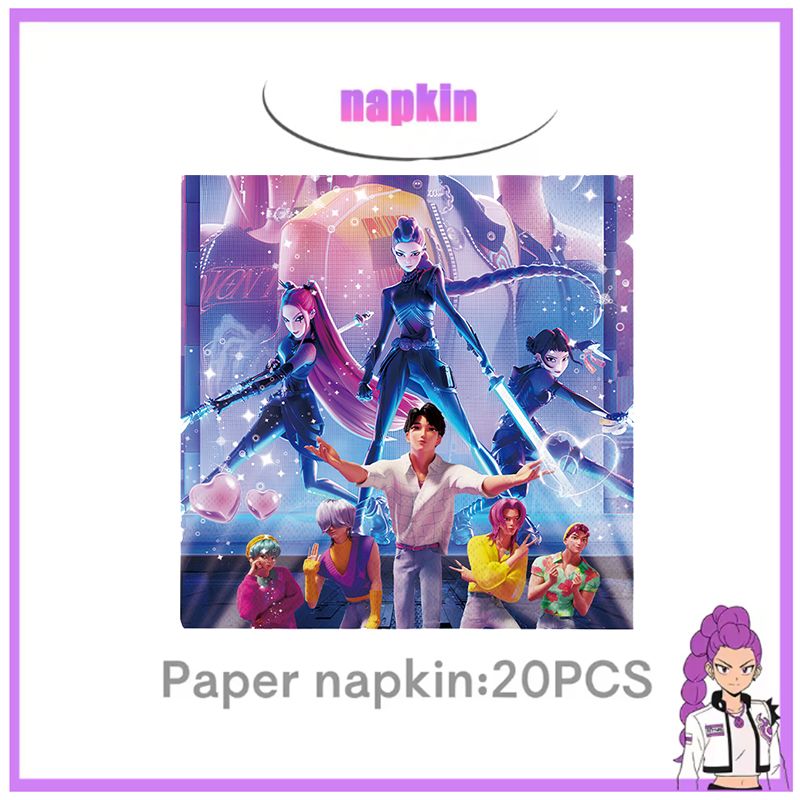 Kpop Demon Hunter Birthday Decoration Tableware Foil Balloons Gift Bag Plate Cup for Kpop Cake Topper Banner Backdrop Supplies