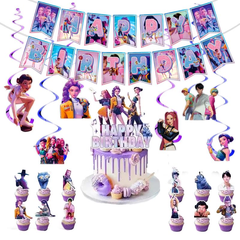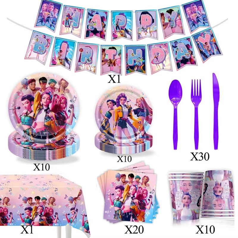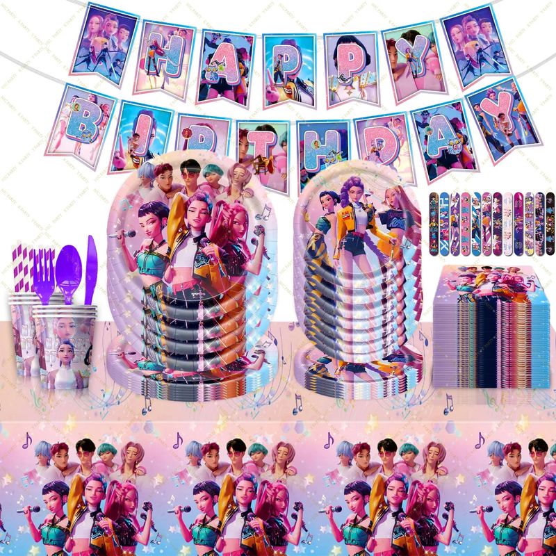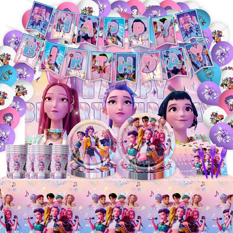 Kpop Demon Hunter Birthday Party Decoration Party Supplies Set Tablecloth Plates Cup Napkins For Baby Girls Birthday Party Gift