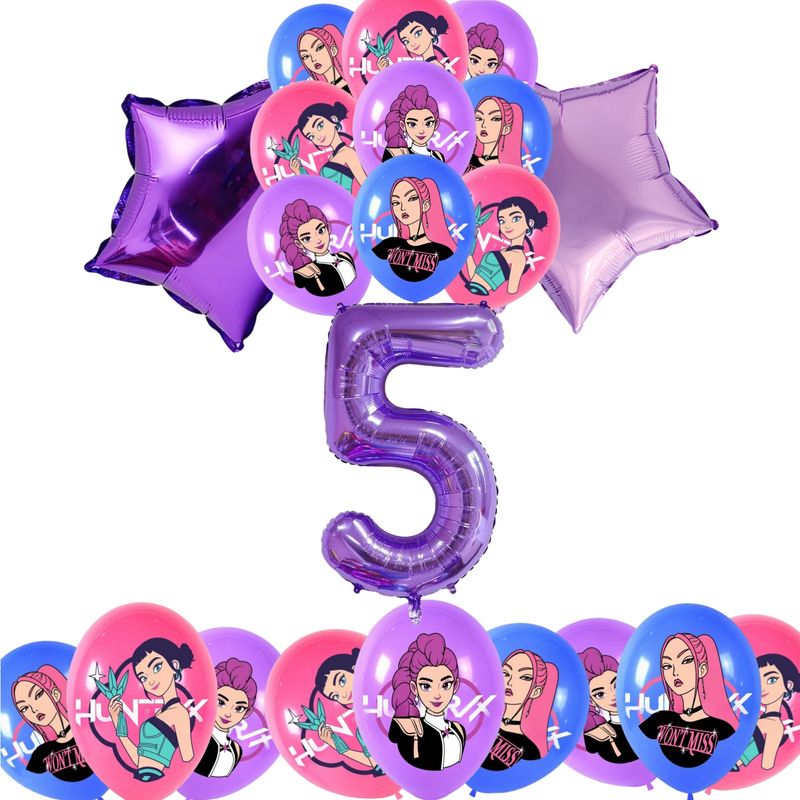 Kpop Demon Hunters Anime Birthday Balloon Decoration Set Demon Hunters Number Aluminum Ballons Girl Kids Favors Party Supplies