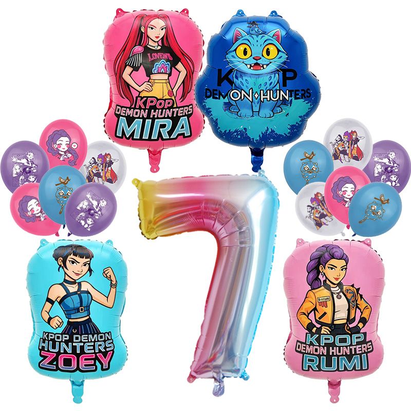 KPop Demon Hunters Birthday Party Decoration Aluminum Foil Balloon Latex Event Supplies Disposable Tableware Banner Backdrop