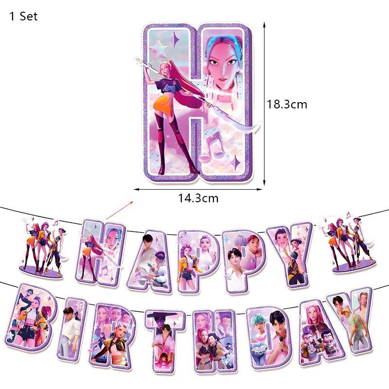 KPop Demon Hunters Birthday Party Decoration Aluminum Foil Balloon Latex Event Supplies Disposable Tableware Banner Backdrop