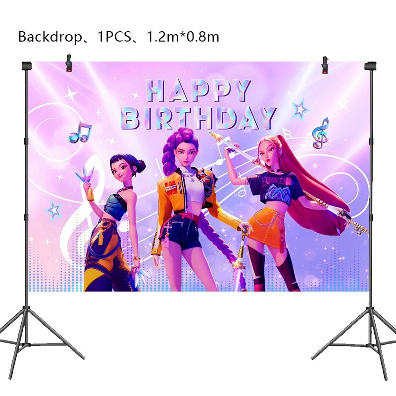 KPop Demon Hunters Birthday Party Decoration Aluminum Foil Balloon Latex Event Supplies Disposable Tableware Banner Backdrop