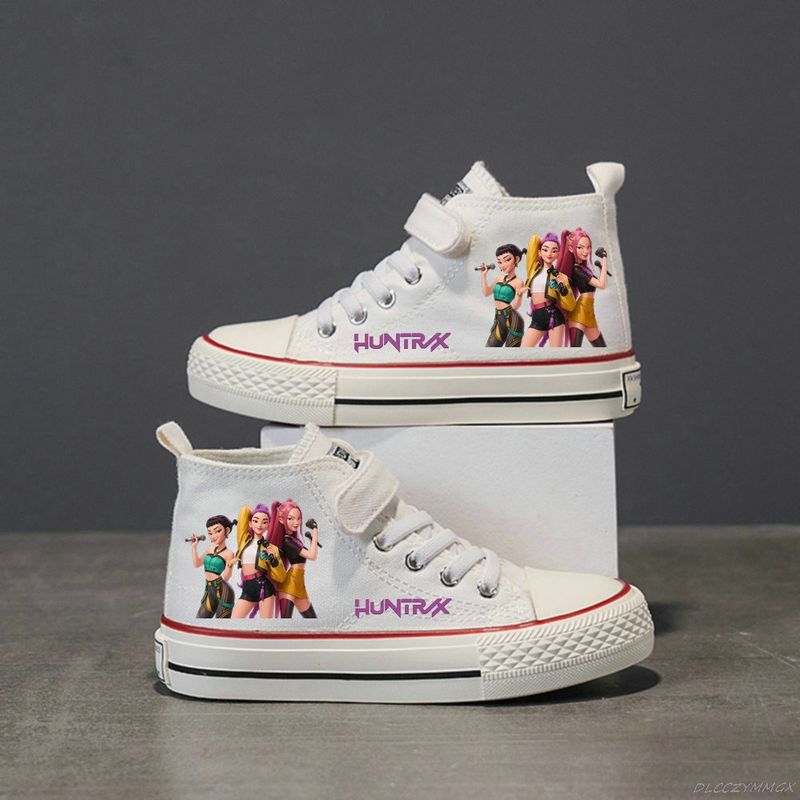 KPop Demon Hunters Children Canvas Shoes High-Top Girls Shoes Kids White Shoes Student Running Tennis Shoes
