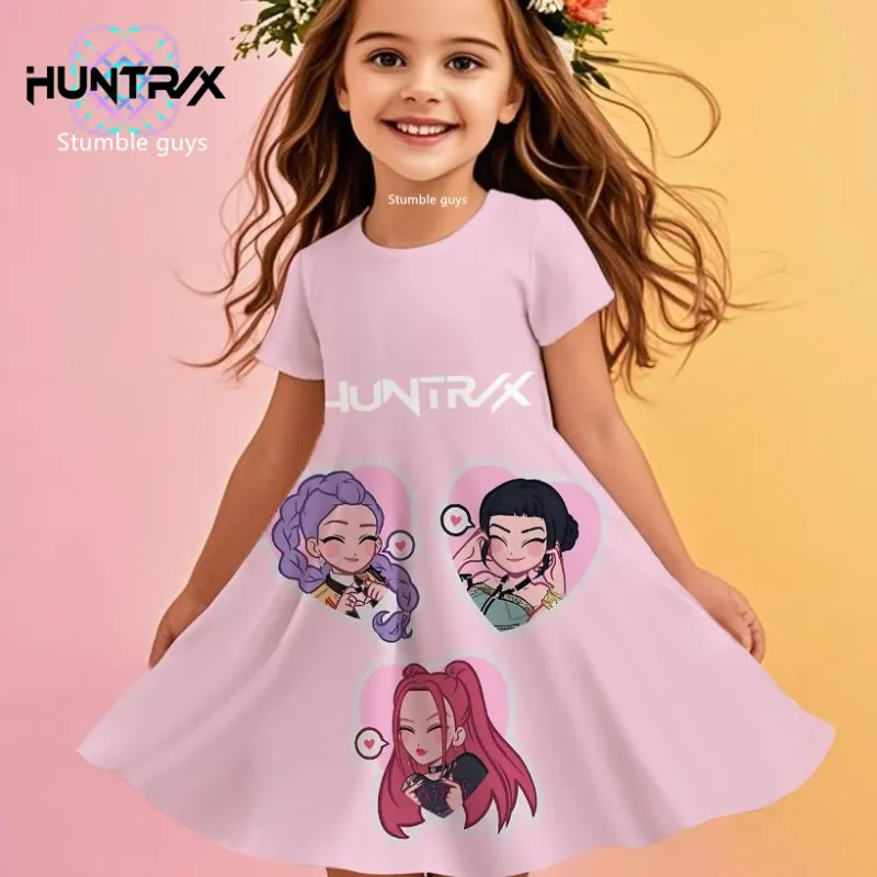 Kpop Demon Hunters Girls Toddler Dress Summer Kids Cartoon Anime Princess Beach Outfit Casual Nightgown