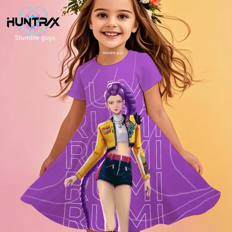 Kpop Demon Hunters Girls Toddler Dress Summer Kids Cartoon Anime Princess Beach Outfit Casual Nightgown