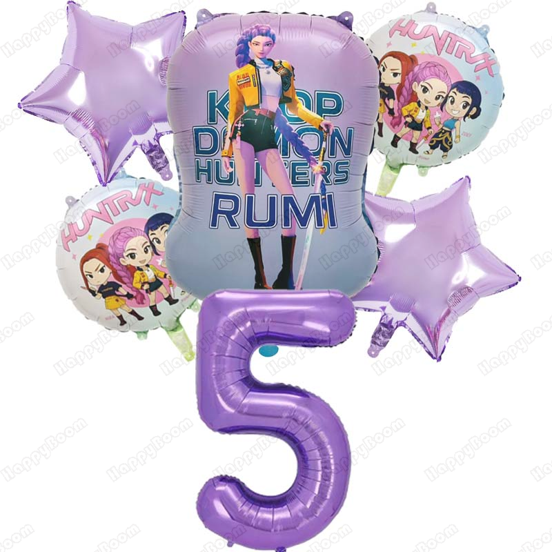 Kpop Demon Hunters Theme Balloon Music Girl RUMI Birthday Party Decoration Number Digit 1-9 Balloon Baby Shower Decor Kid Gifts