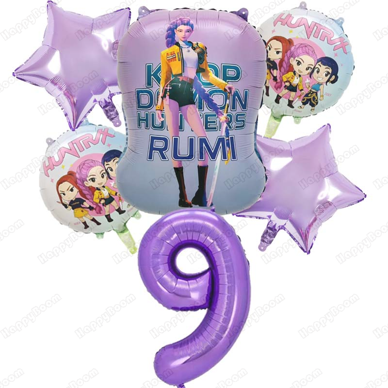 Kpop Demon Hunters Theme Balloon Music Girl RUMI Birthday Party Decoration Number Digit 1-9 Balloon Baby Shower Decor Kid Gifts