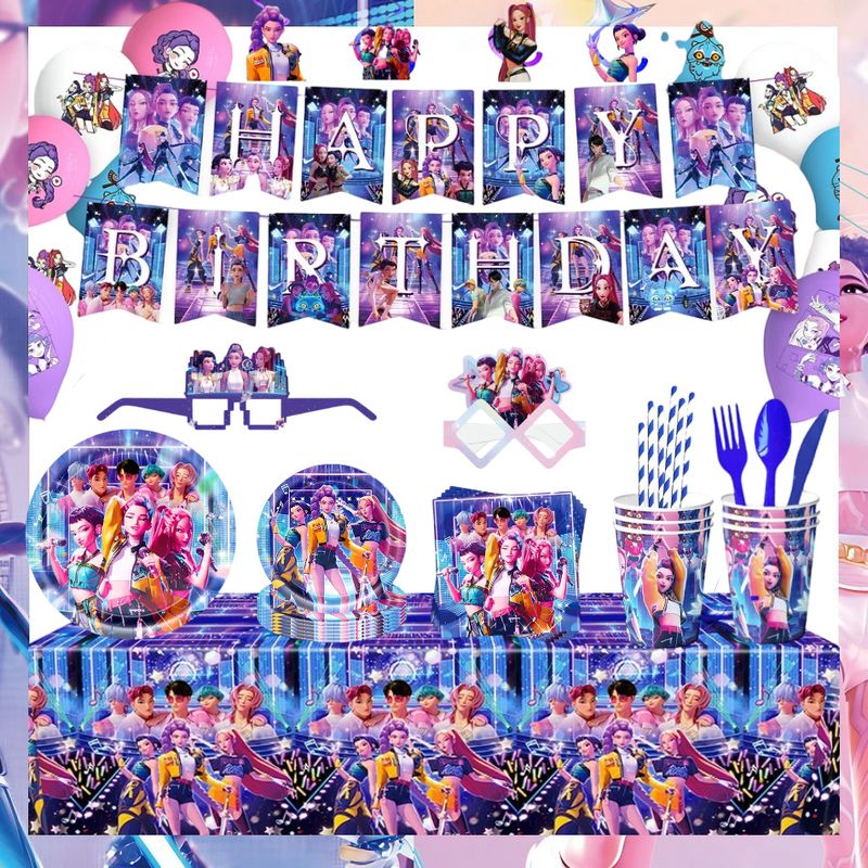 KPop Demon Hunters Theme Birthday Party Banner Balloon Cute Rumi Mira Zoey Set Party Supplies Cake Topper Backdrop Deco Toy Gift