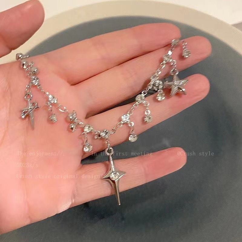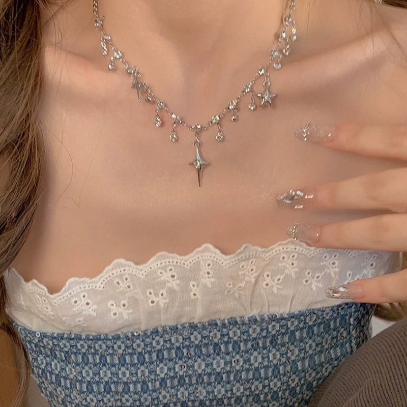 Kpop Star Pendent Necklace for Women Punk Simple Zircon Tassel Clavicle Chain Choker Elegent Party Gift Jewelry Girl
