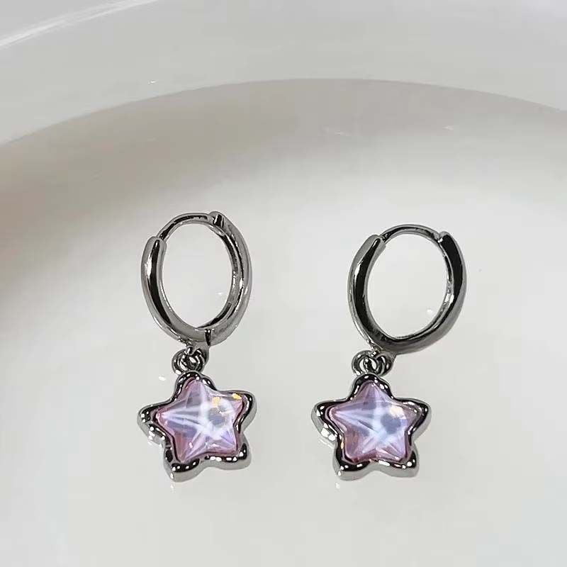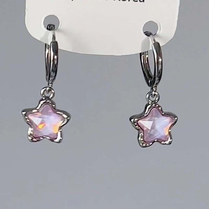 Kpop Y2K Pink Moonlight Stone Star Pendant Earrings For Women Egirl Fashion Sweet Crystal Star Ear Buckle Jewelry Accessories