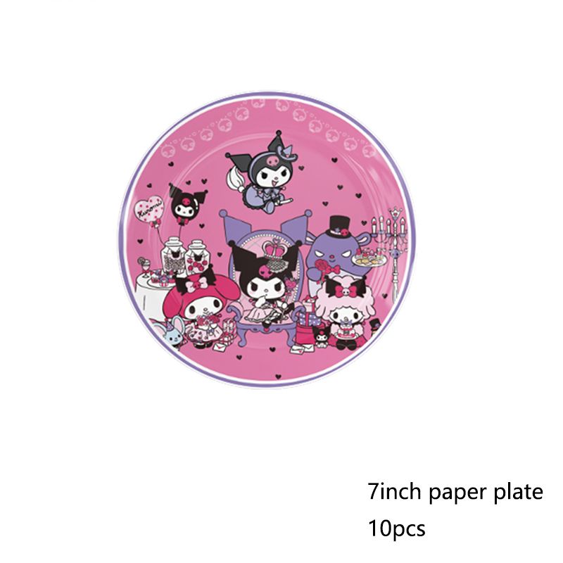 Kuromi Birthday Party Decoration Cinnamoroll Mymelody Balloon Disposable Tableware Plate Napkin Backdrop For Kids Party Supplies