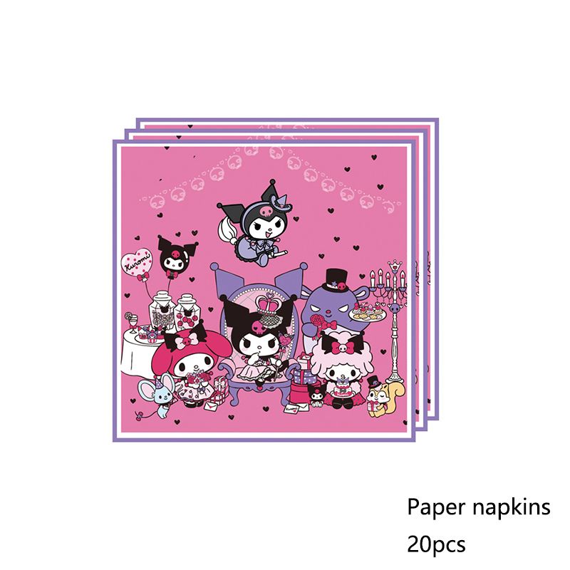 Kuromi Birthday Party Decoration Cinnamoroll Mymelody Balloon Disposable Tableware Plate Napkin Backdrop For Kids Party Supplies