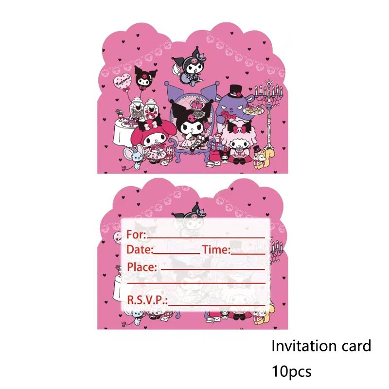 Kuromi Birthday Party Decoration Cinnamoroll Mymelody Balloon Disposable Tableware Plate Napkin Backdrop For Kids Party Supplies