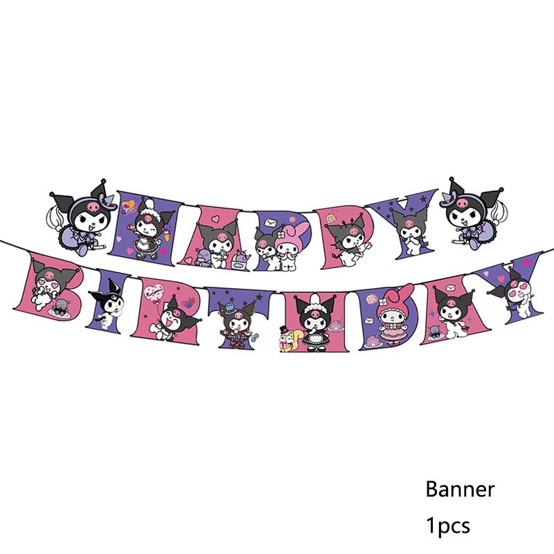 Kuromi Birthday Party Decoration Cinnamoroll Mymelody Balloon Disposable Tableware Plate Napkin Backdrop For Kids Party Supplies