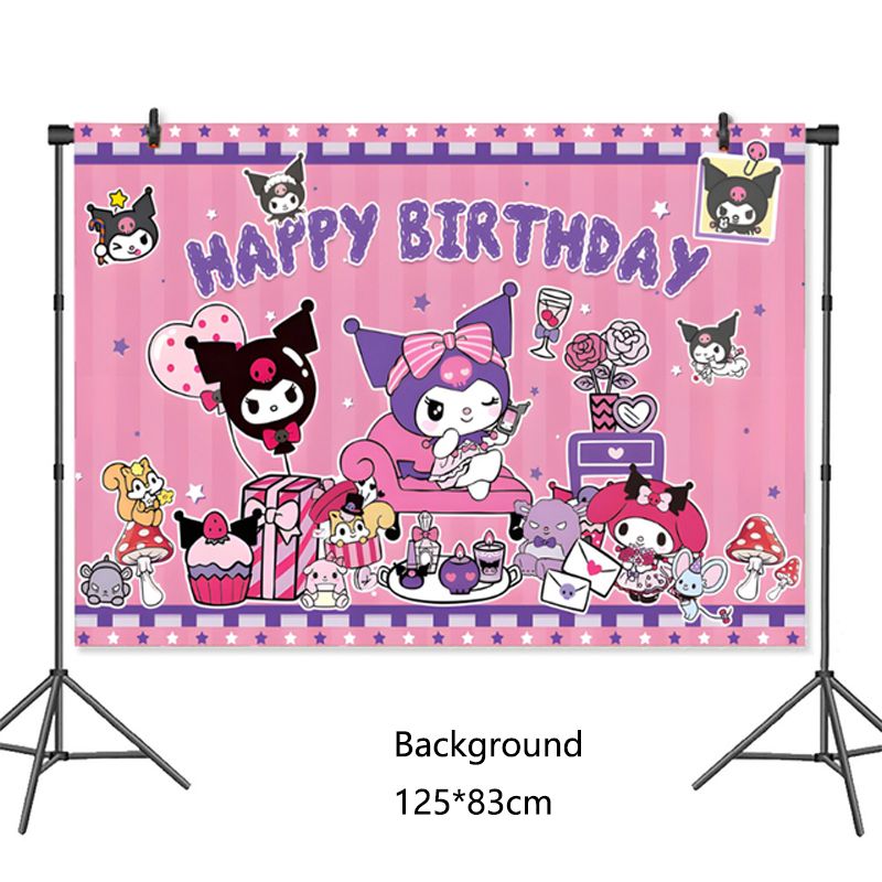 Kuromi Birthday Party Decoration Cinnamoroll Mymelody Balloon Disposable Tableware Plate Napkin Backdrop For Kids Party Supplies