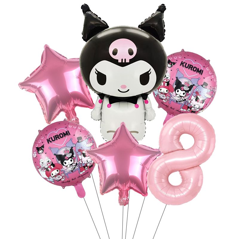 Kuromi Birthday Party Decoration Cinnamoroll Mymelody Balloon Disposable Tableware Plate Napkin Backdrop For Kids Party Supplies