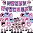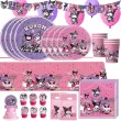 Kuromi Birthday Party Decoration Cinnamoroll Mymelody Balloon Disposable Tableware Plate Napkin Backdrop For Kids Party Supplies