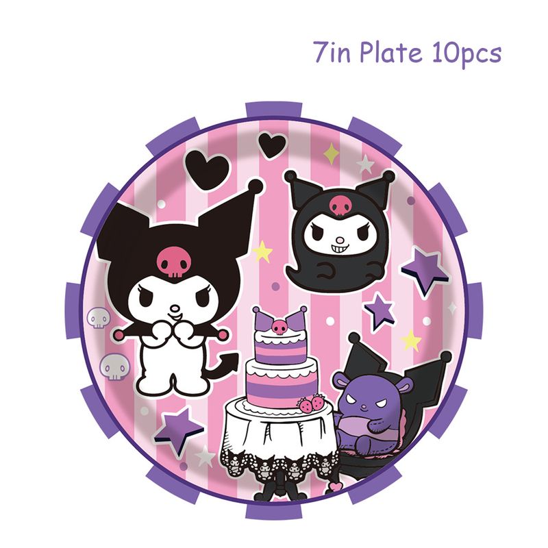 Kuromi Birthday Party Decoration Cinnamoroll Mymelody Balloon Disposable Tableware Plate Napkin Backdrop for Kids Party Supplies