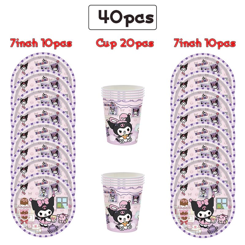 Kuromi Birthday Party Decorations Kuromi Theme Party Melody Tablecloth Dining Tray Tissue Cup Children Baby Shower Party Supplie