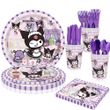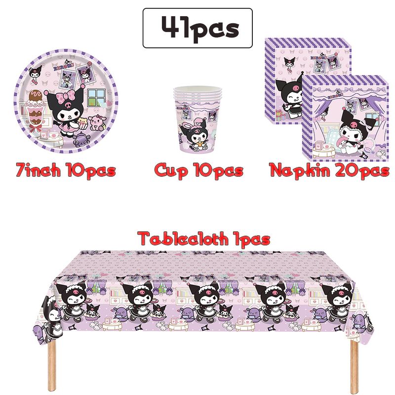 Kuromi Birthday Party Decorations Kuromi Theme Party Melody Tablecloth Dining Tray Tissue Cup Children Baby Shower Party Supplie