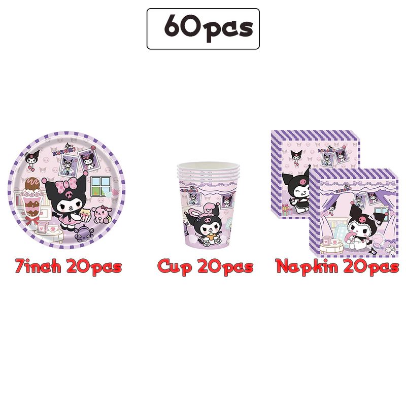 Kuromi Birthday Party Decorations Kuromi Theme Party Melody Tablecloth Dining Tray Tissue Cup Children Baby Shower Party Supplie