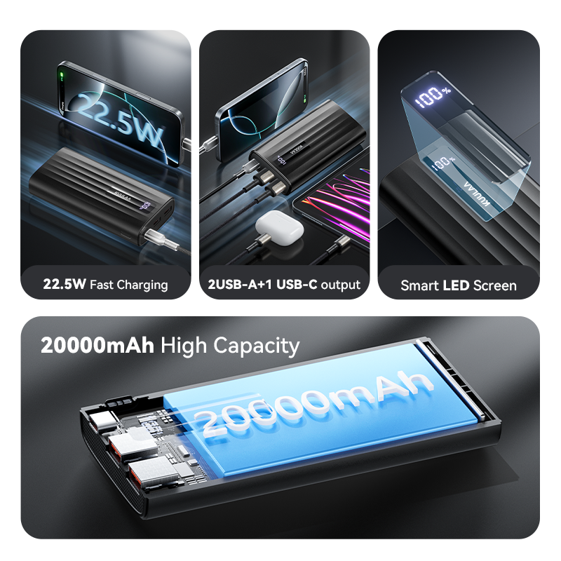 KUULAA 20000mAh/10000mAh Power Bank 22.5W PD Fast Charging Portable Charger External Battery For iPhone 15 14 13 Samsung Huawei