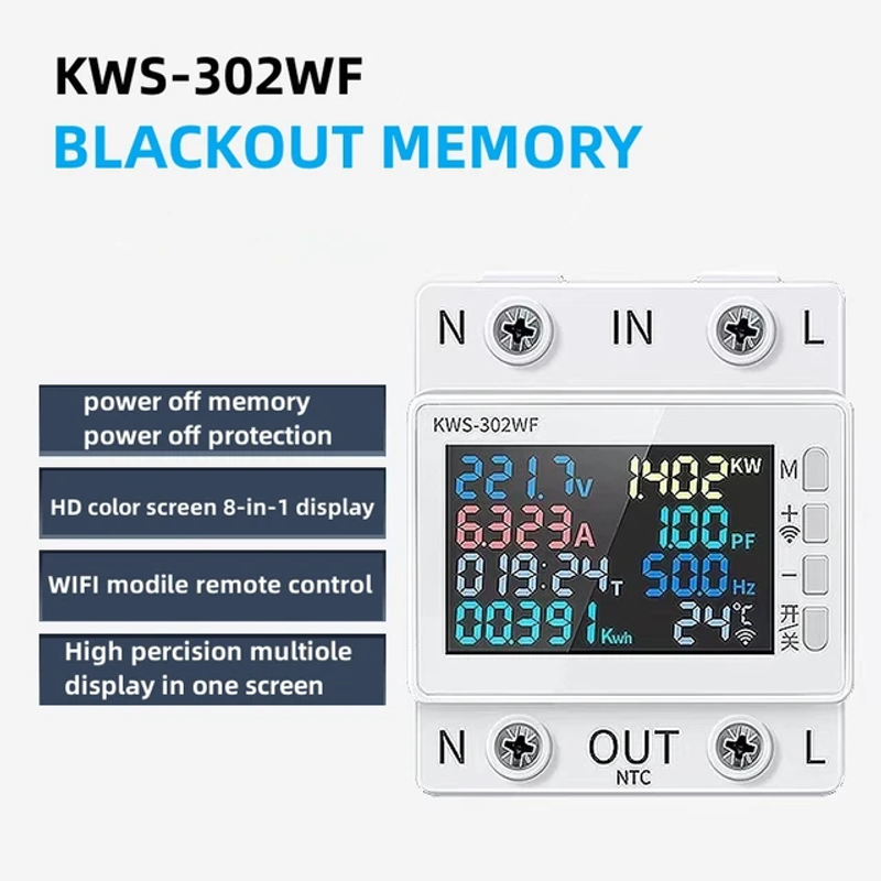 KWS-302 WiFi Smart Power Meter Over Under Voltage Protector Switch Current Voltage Monitor Relay Value Settable Circuit Breaker