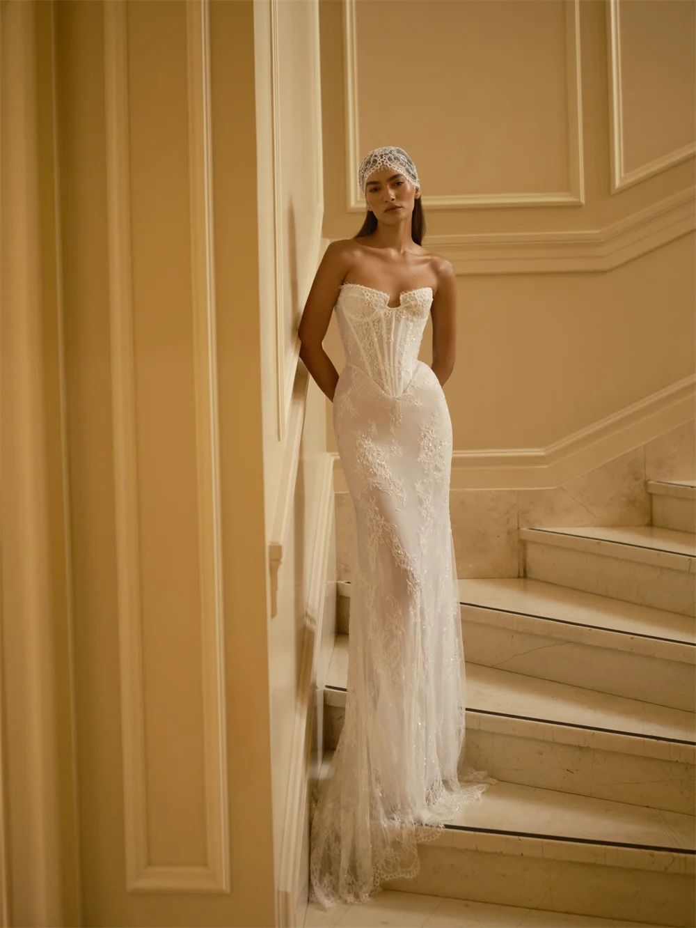 Kyoto Customized White Strapless Neck Wedding Dress Sleeveless Lace vestidos de noiva Mermaid Floor-Length Evening Dress 2026