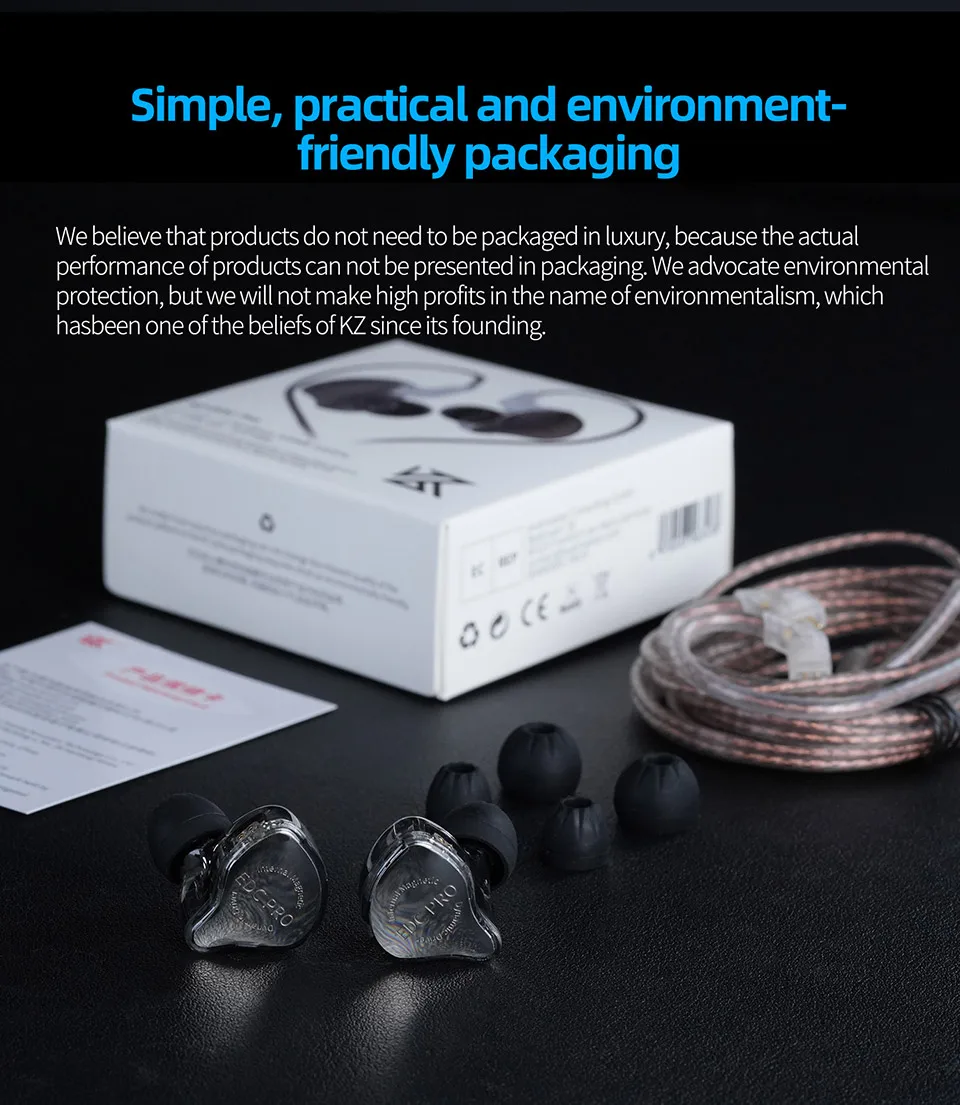 KZ EDC Pro Wire Earphone Large Dynamic Drivers Monitor Bass In-ear Headphone Cancelling Headset with Detachable Audio Cable
