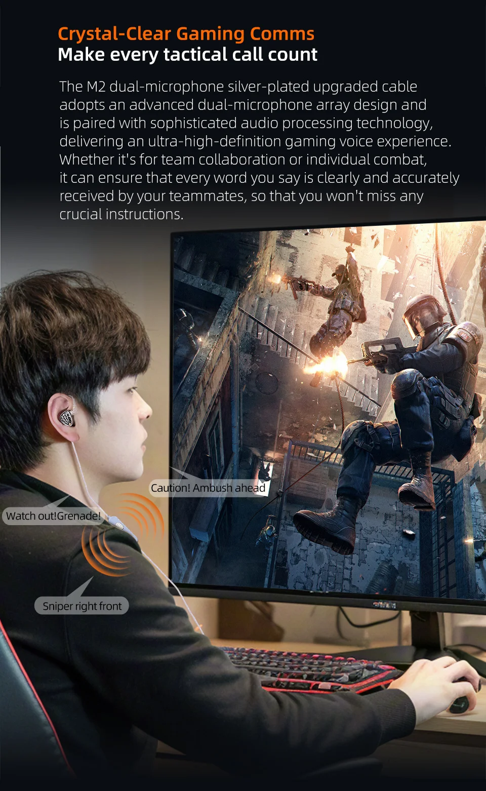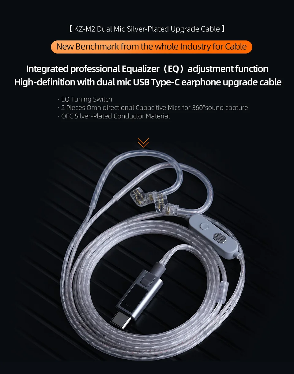 KZ M2 Cable DAC Type C OFC Silver-Plated Dual-Mic Upgraded Earphone Wire
