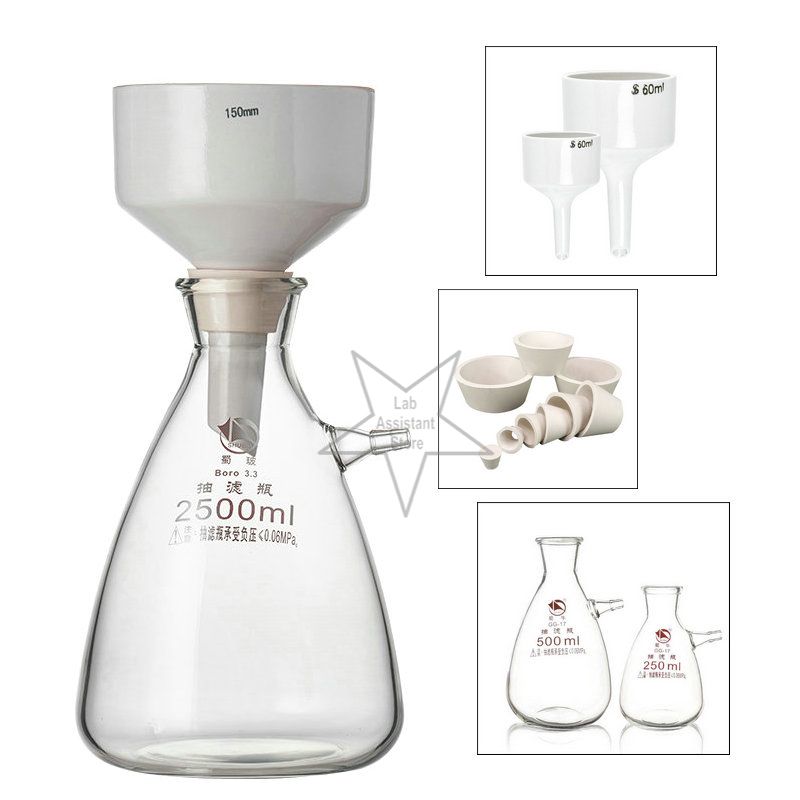 Laboratory Ceramic Buchner Funnel 40mm/60mm/80mm/100mm, Glass Filter Flask 250/500/1000ml, Lab Buchner Funnel Holder