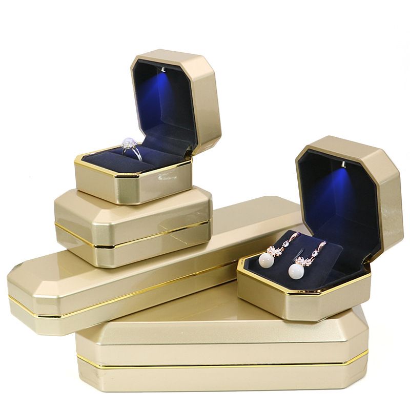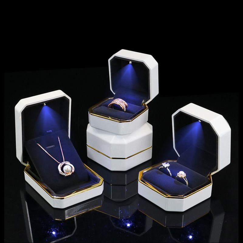 Lacquer Piano Finish Ring Earrings Necklace Pendant Box with LED Light Luxury Plastic Jewelry Organizer Gift Packaging Case