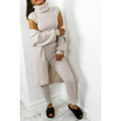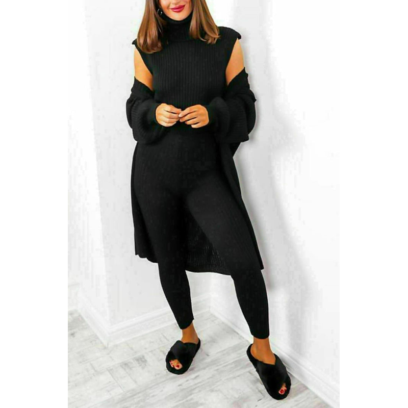 Stay cozy and fashionable in the LADIES 3 PIECE SUIT ROLL NECK CHUNKY KNITTED RIBBED TRACKSUIT LOUNGE SET. This stylish set includes a roll neck, chunky knitted ribbed top and bottom matched with tracksuit trousers. Perfect for lounging or running errands.