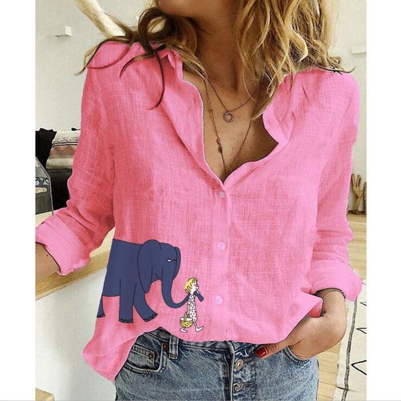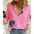 Ladies Casual Loose Long-sleeved Linen Shirt Plus Size Women Pink 2XL