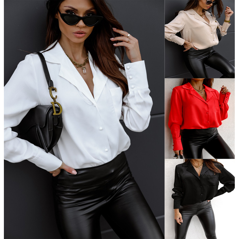 Ladies' Explosive Long Sleeve Suit Collar Shirt Black 2XL