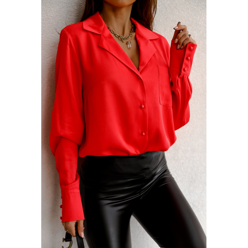 Ladies' Explosive Long Sleeve Suit Collar Shirt Red S