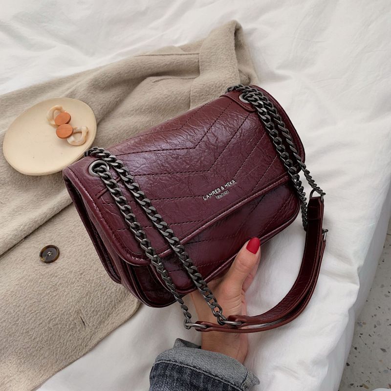 Ladies Fashion Versatile Chain Shoulder Bag Wine Red