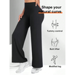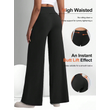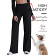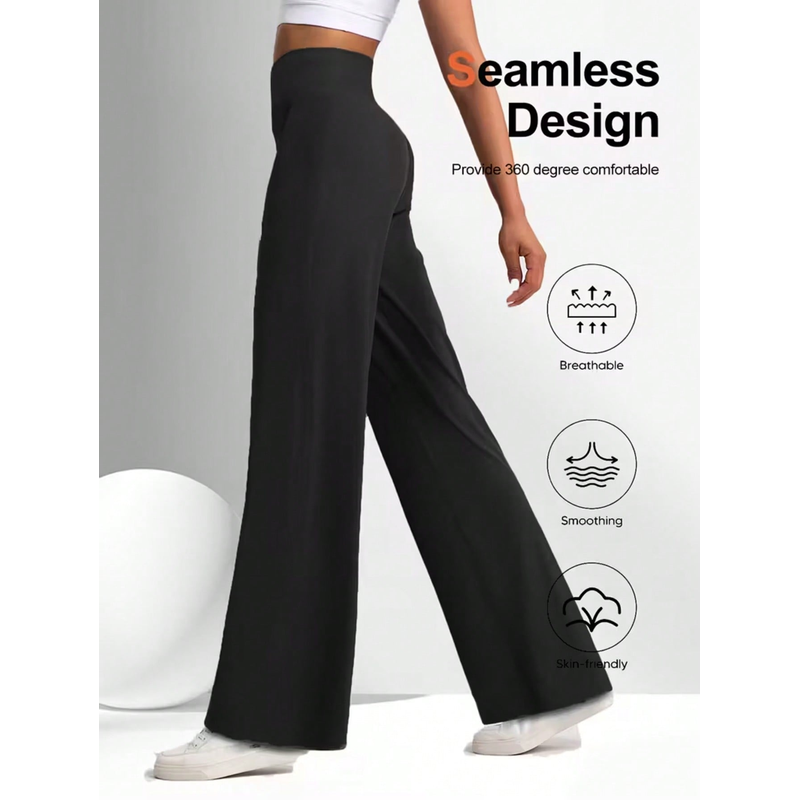 Ladies' high waisted elastic fabric elastic waistband solid color wide leg yoga pants pants, suitable for outdoor fitness