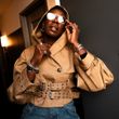 Equipped with multiple buckle belts at the waist, the jacket creates a tailored, hourglass shape. You can adjust the belts to your preference, enhancing the overall flattering fit. ��