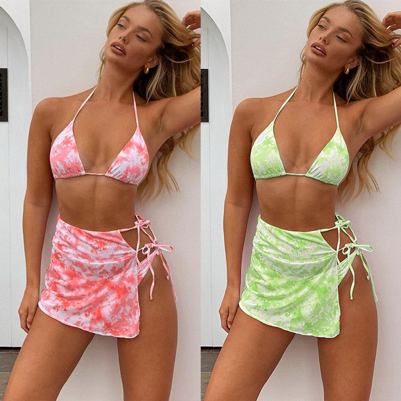 Color: pink tie-dye, green tie-dye, hot three-piece set