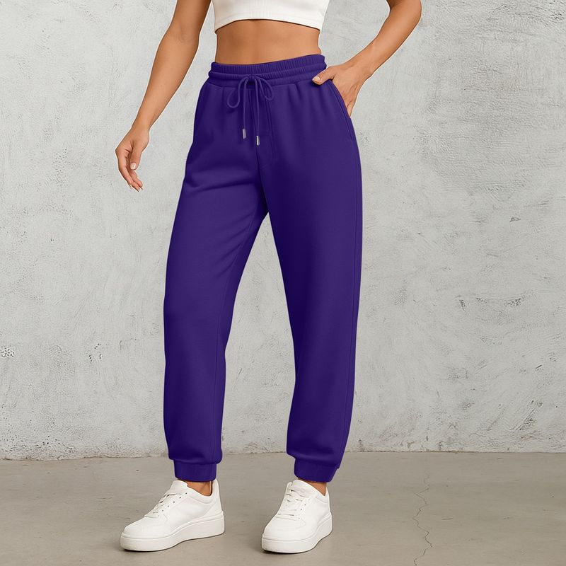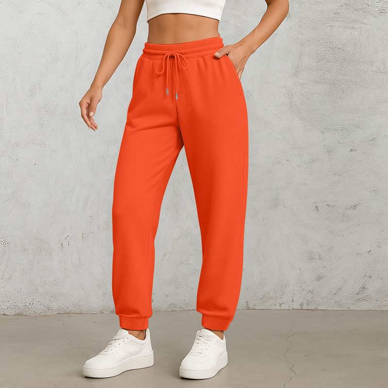 Ladies' Straight Leg Pants Fashionable Solid Color High Waist Drawstring Pockets Elastic Waist Casual Pants Sweatpants For Women