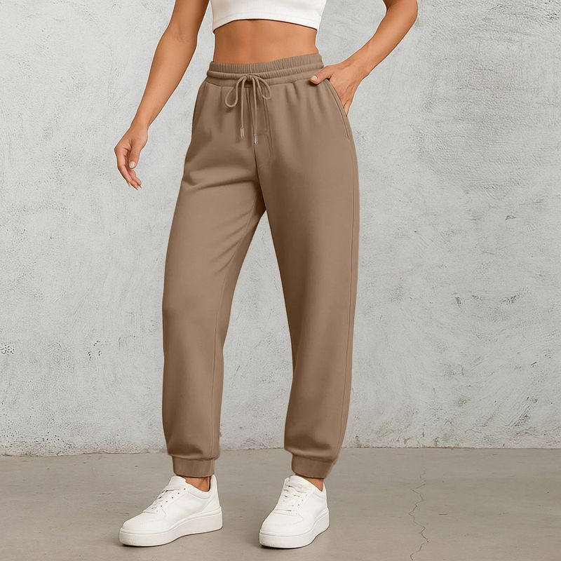 Ladies' Straight Leg Pants Fashionable Solid Color High Waist Drawstring Pockets Elastic Waist Casual Pants Sweatpants For Women