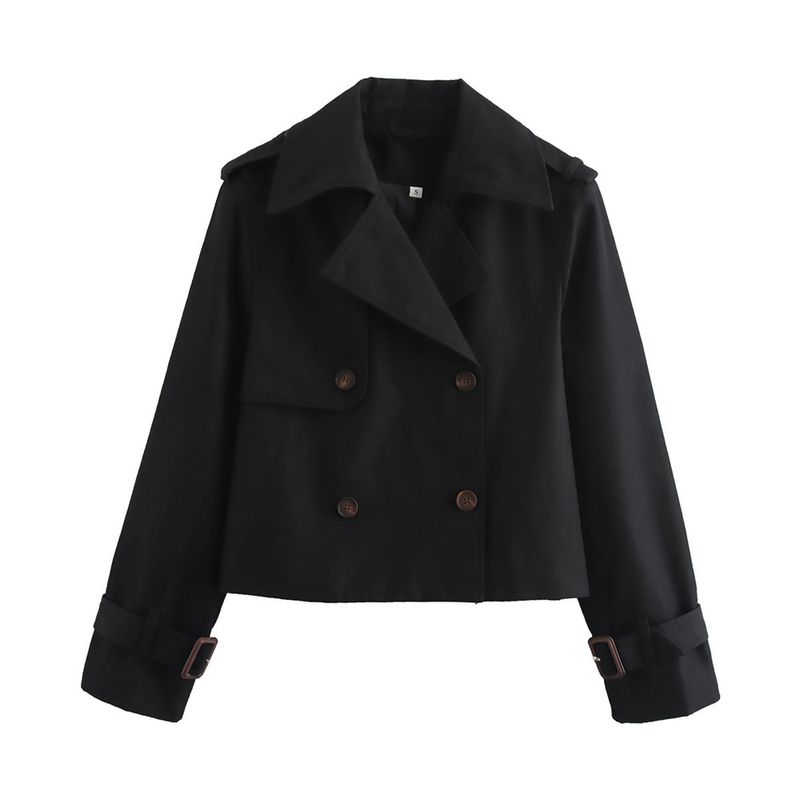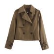 Ladies Vintage Cropped Trench Spring Autumn Jacket Women Streetwear Double Breasted Long Sleeve Top Female Chic Coat Outfits