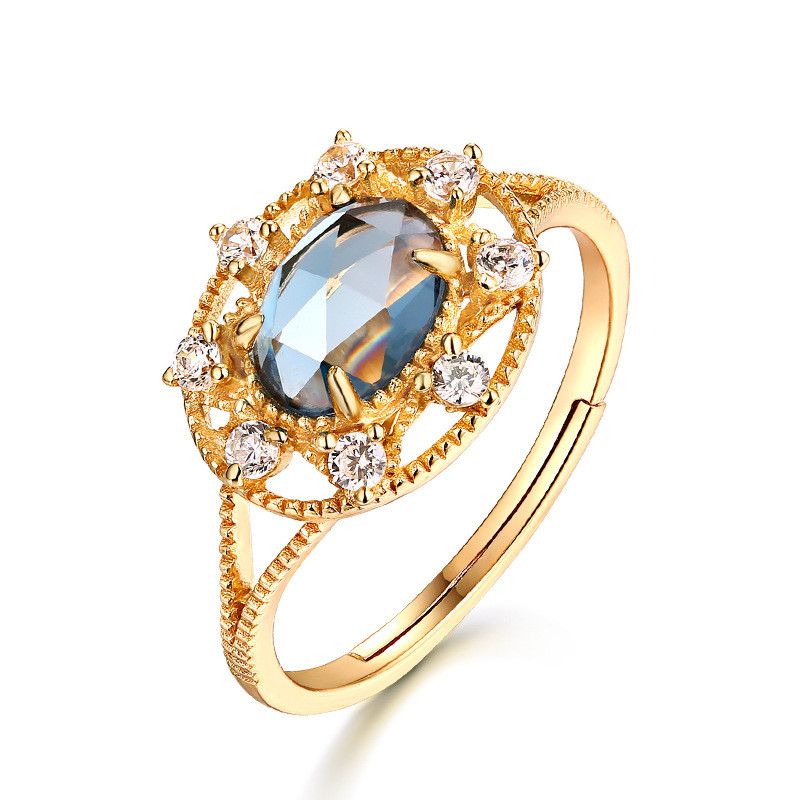Main stone: 5 * 7mm London lantopa, 1.6 * 1.6mm zircon