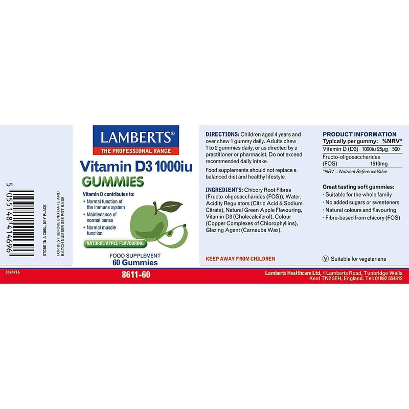As with all gummies in the Lamberts® range, Vitamin D3 1000 IU Gummies: