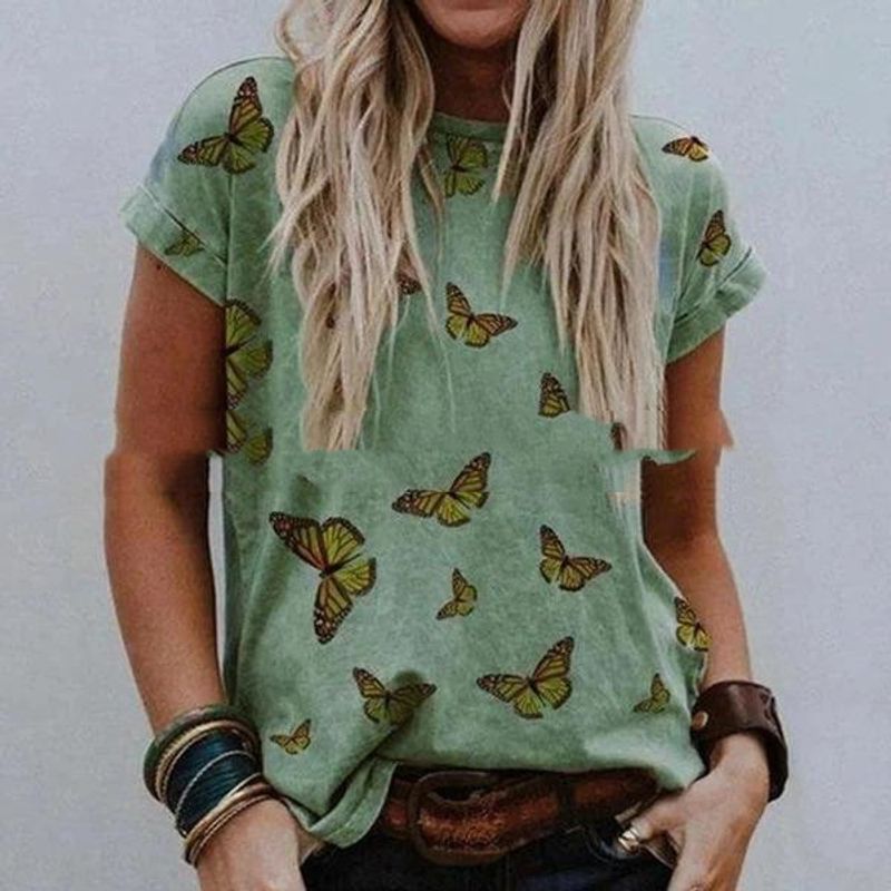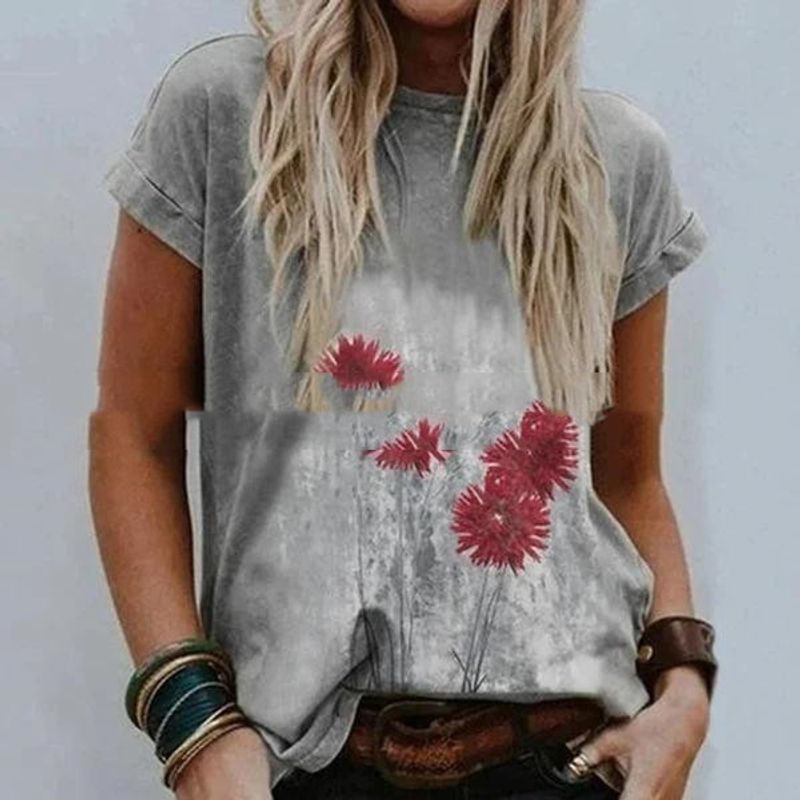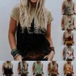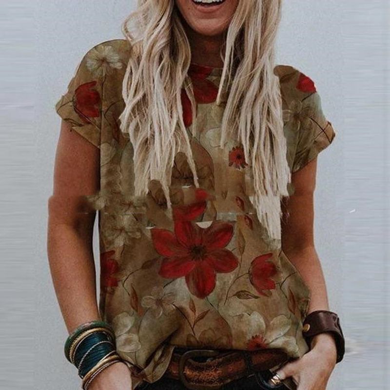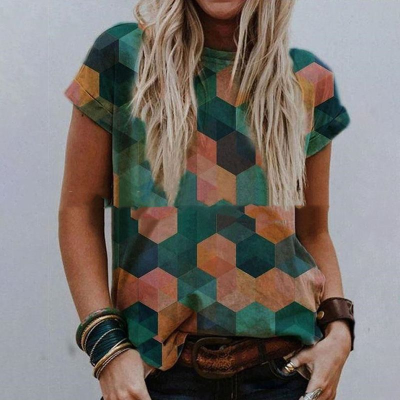 Landscape Print Round Neck Short Sleeve Ladies Casual T Shirt D 4XL
