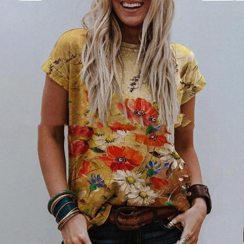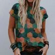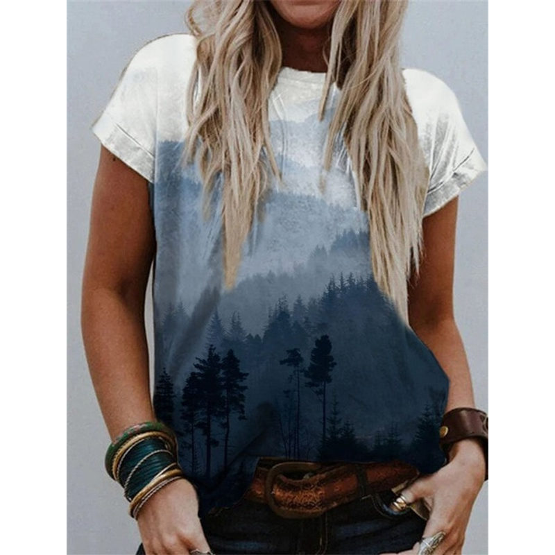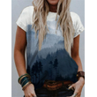 Landscape Print Round Neck Short Sleeve Ladies Casual T Shirt I 2XL
