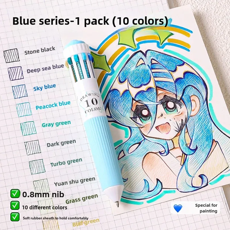 Languo 120/10 Color Ballpoint Pen Cartoon 0.8mm Soft Grip Press Multicolor Writing Pen for Drawing School Supplies Stationery