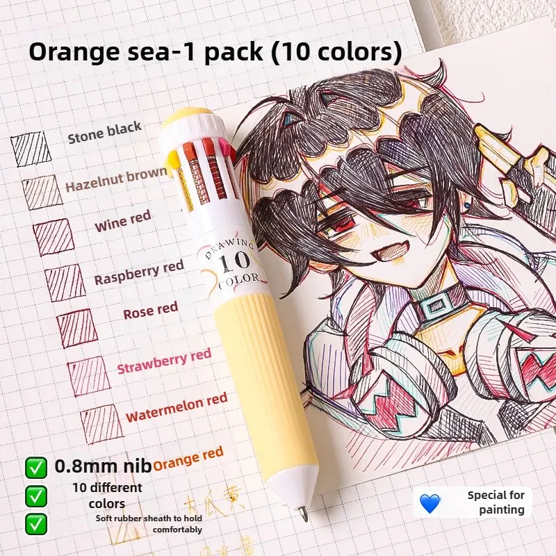 Languo 120/10 Color Ballpoint Pen Cartoon 0.8mm Soft Grip Press Multicolor Writing Pen for Drawing School Supplies Stationery